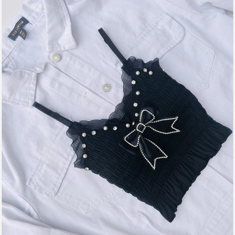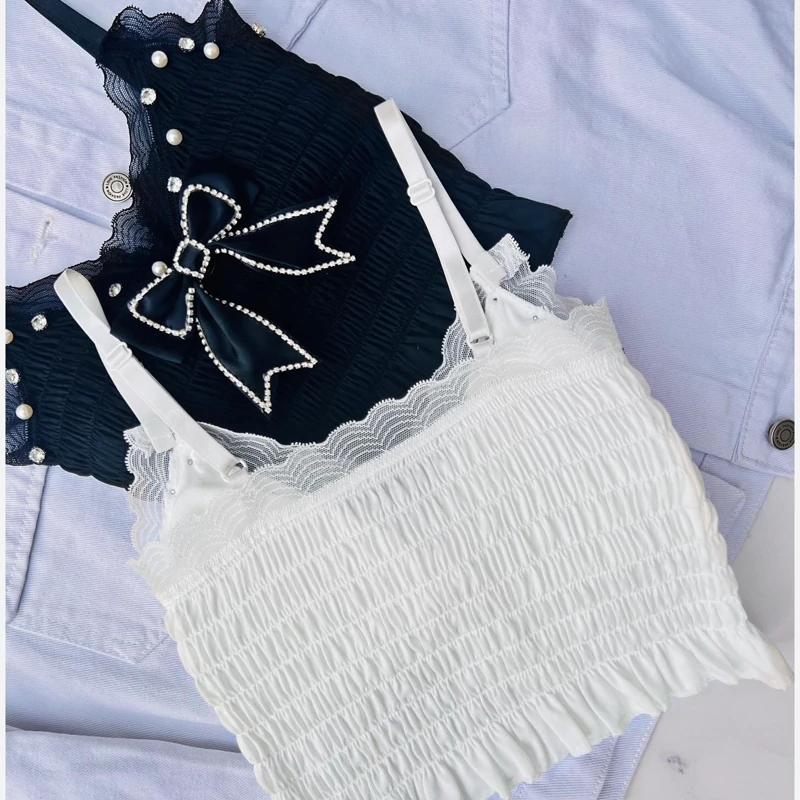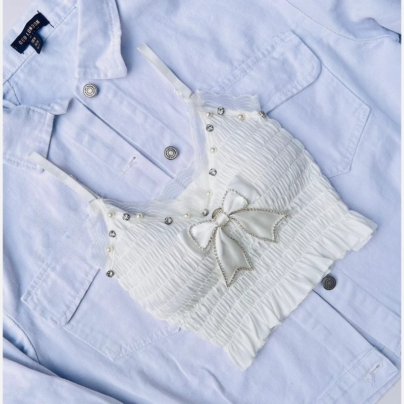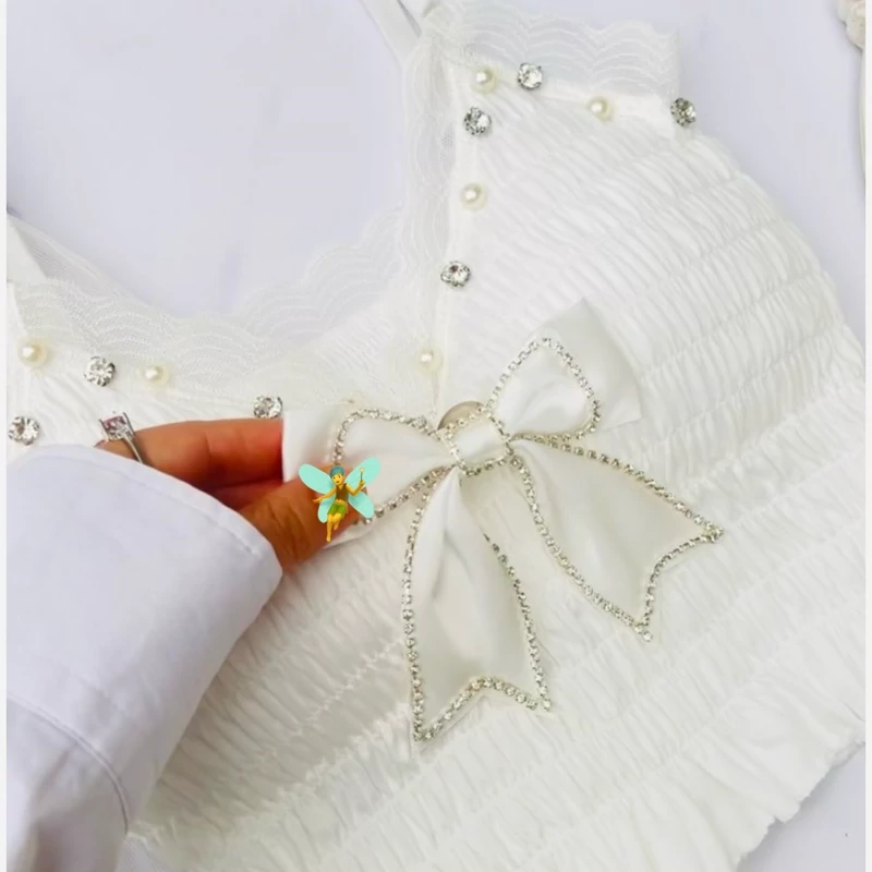 کراپ پاپیونی مرواریدی برای مهمونی هاتون👼🏻🪞🪄 جنسش نخ پنبه ای نرم و لطیفه🪽😌 شاین مروارید و نگین کار شده روی پاپیون و یقه ، خیلی نازش کرده✨🥺 سنجاق سینه پاپیونیش متحرکه و با قفل جدا و متصل میشه🤌🏻 مروارید های لبه ی یقه هم پرس شده که اصلا کنده نمیشه🤩🔥 استایلش با دامن ، برای مهمونی و دور همی ها یه استایل ظریف دخترونه میسازه👒☺️ لطیف ترین جنسو داره😍✨ کاپ ثابته و حسابی خوش ایست👌🏻 خیلی خیلی لطیف و کشیه🫶🏻 کاپدار متحرک / بند سرشانه تنظیمی😌 فری سایز مناسب سوتین 60-80و سایز بدنی 34-40✅ قیمت:558💸 کشسانی دور قسمت بالای سینه تا90🔥 کشسانی دور کمر تا105🔥 قد کراپ44🔥 اگه سایزتو نمیدونی دایرکت پیام بذار راهنماییت میکنیم💖