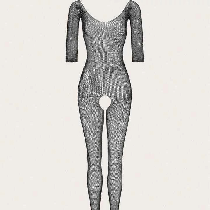 لباس خواب بادی فاق باز اورال(فیشنت) نگین دار و بدون نگین با کشسانی بالا سرهمی فانتزی زنانه