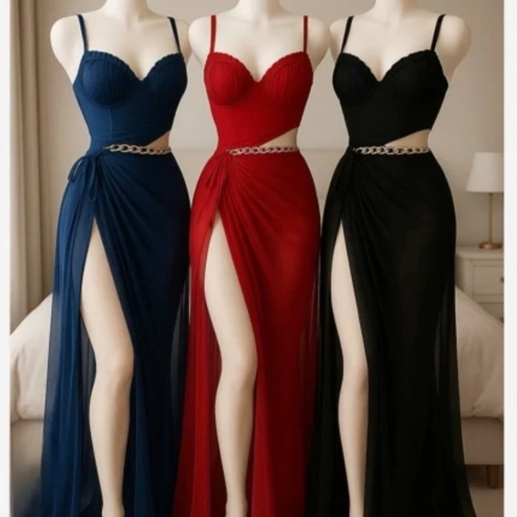 لباس خواب حریر زنانه زنجیری ست سه تیکه وارداتی