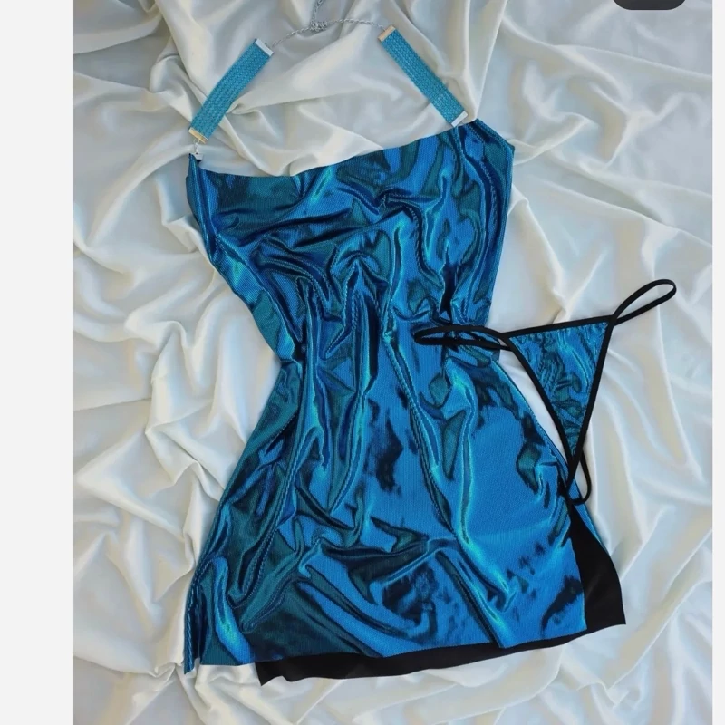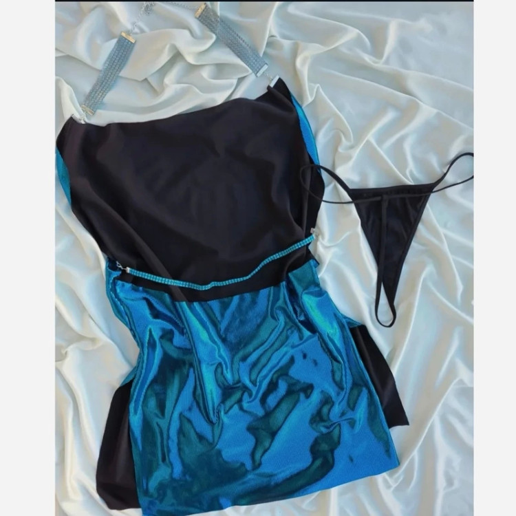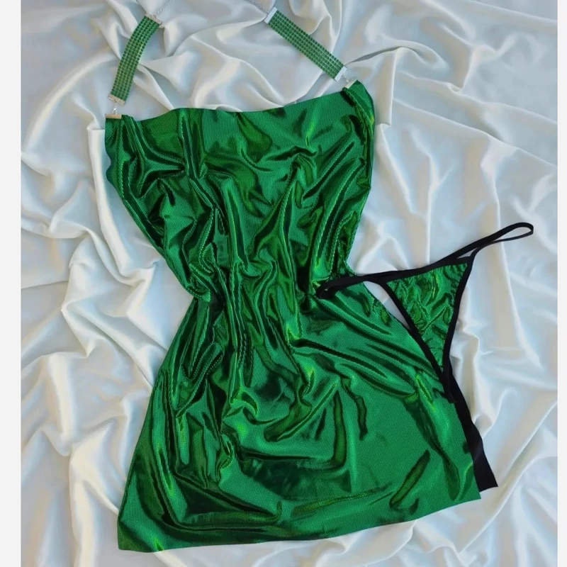 لباس خواب پیراهنی شاین دیسکویی ست دو تیکه پیراهن +شورت فانتزی لامبادا