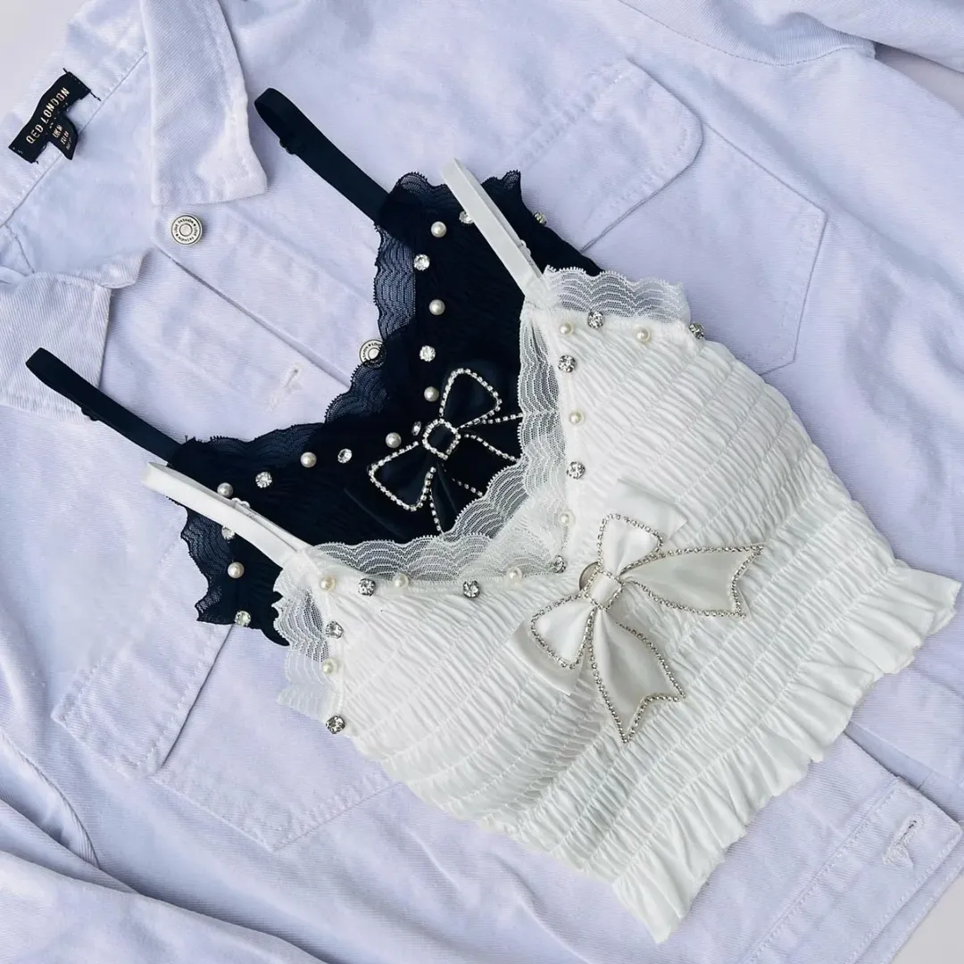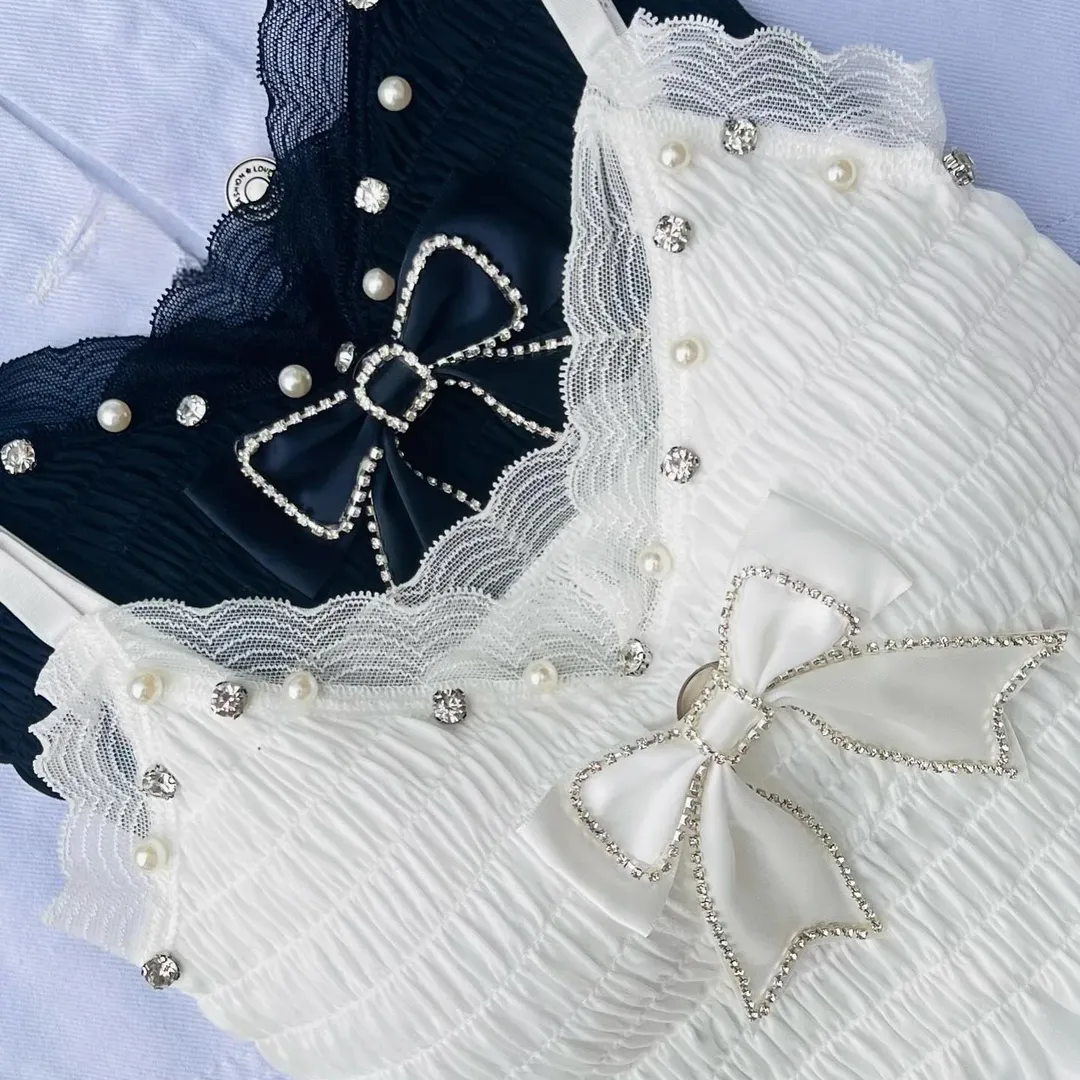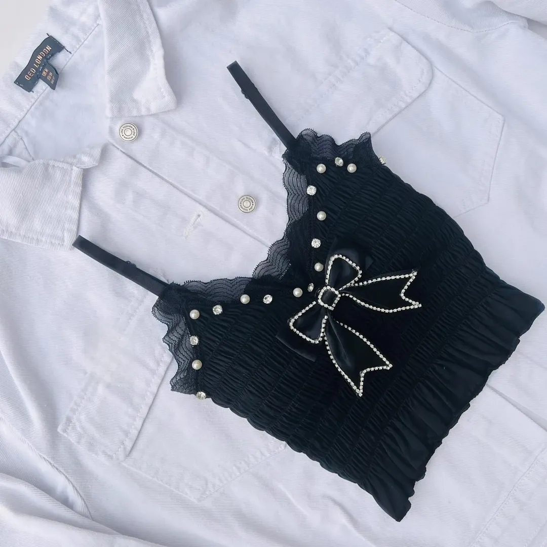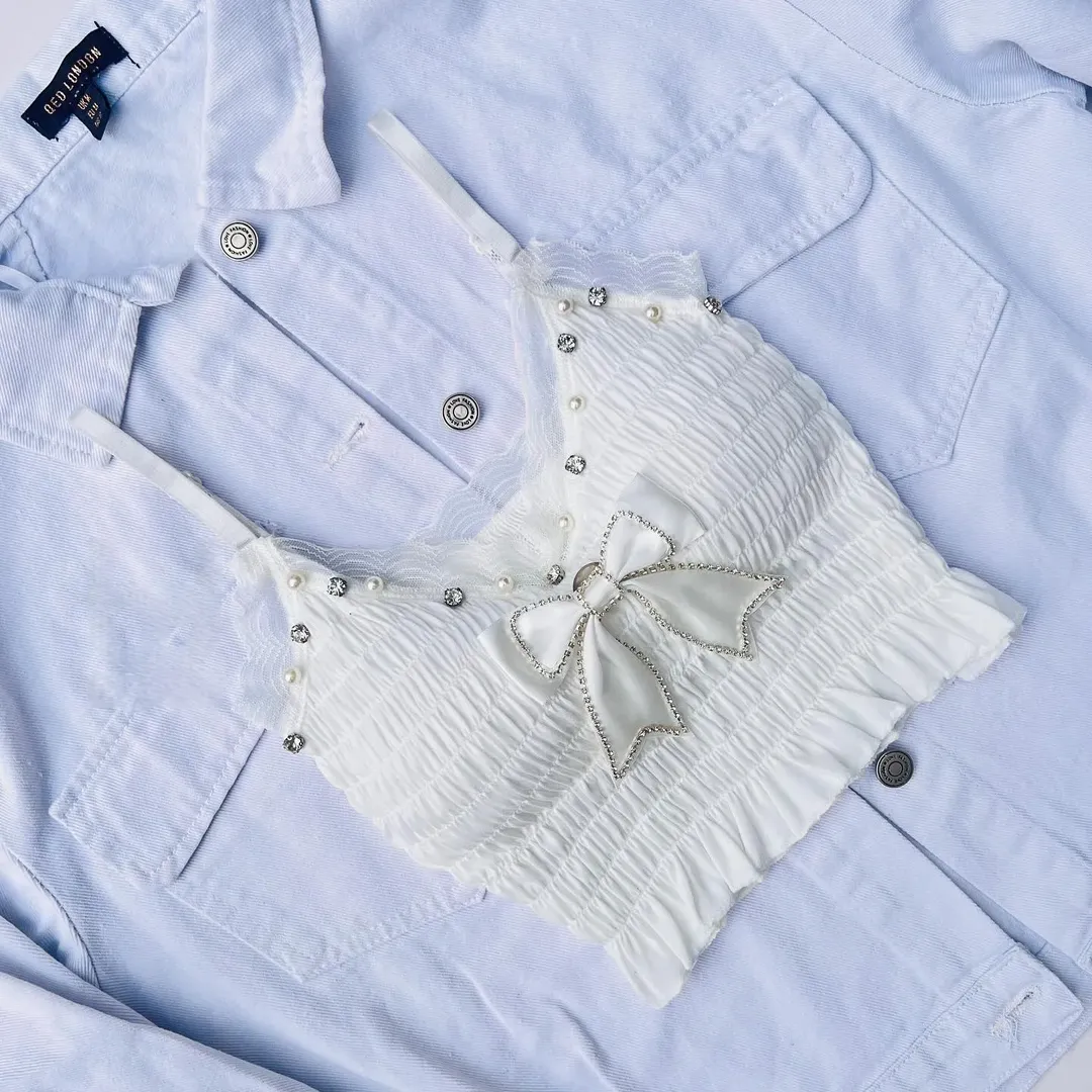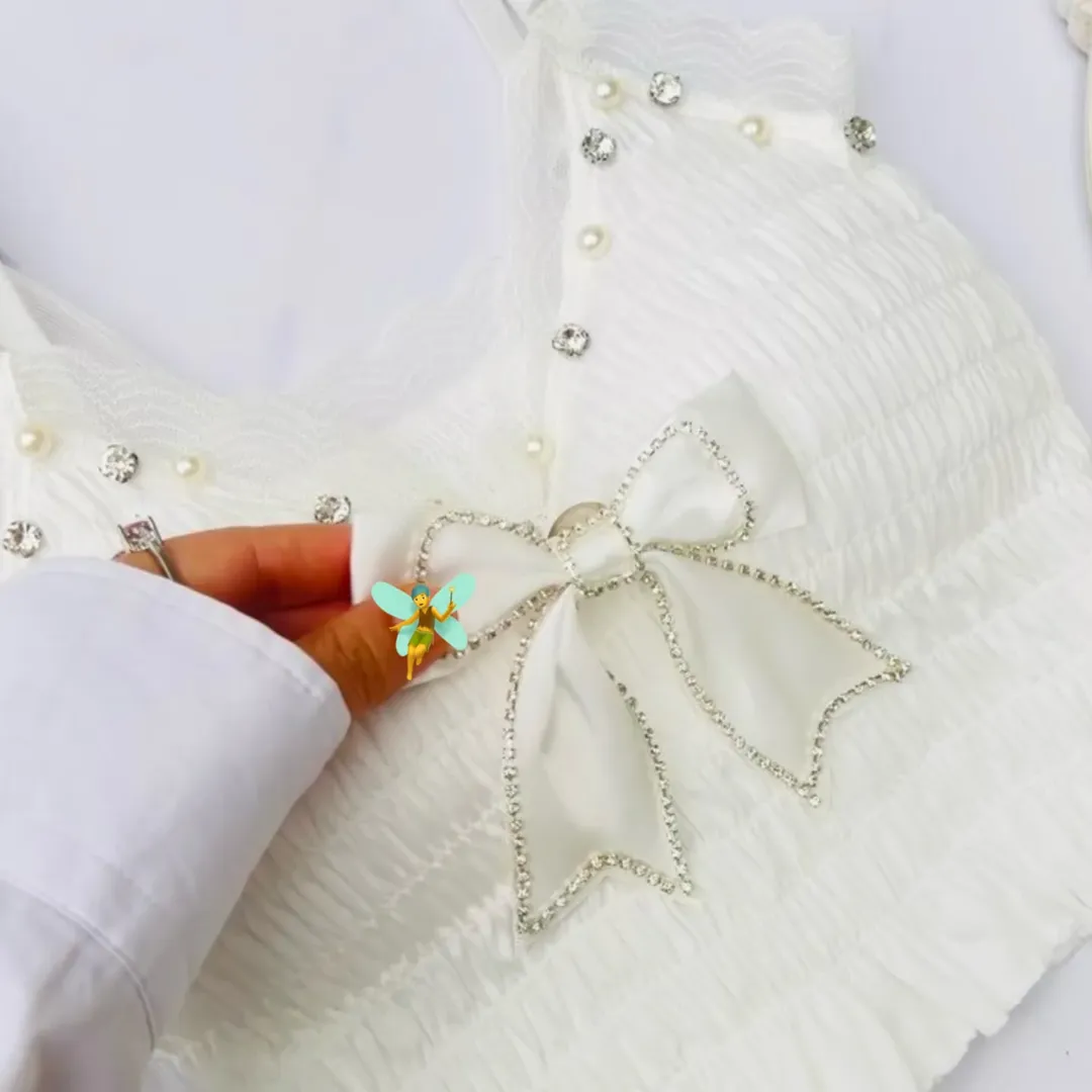 کراپ پاپیونی مرواریدی برای مهمونی هاتون👼🏻🪞🪄 جنسش نخ پنبه ای نرم و لطیفه🪽😌 شاین مروارید و نگین کار شده روی پاپیون و یقه ، خیلی نازش کرده✨🥺 سنجاق سینه پاپیونیش متحرکه و با قفل جدا و متصل میشه🤌🏻 مروارید های لبه ی یقه هم پرس شده که اصلا کنده نمیشه🤩🔥 استایلش با دامن ، برای مهمونی و دور همی ها یه استایل ظریف دخترونه میسازه👒☺️ لطیف ترین جنسو داره😍✨ کاپ ثابته و حسابی خوش ایست👌🏻 خیلی خیلی لطیف و کشیه🫶🏻 کاپدار متحرک / بند سرشانه تنظیمی😌 فری سایز مناسب سوتین 60-80و سایز بدنی 34-40✅ قیمت:538💸 کشسانی دور قسمت بالای سینه تا90🔥 کشسانی دور کمر تا105🔥 قد کراپ44🔥