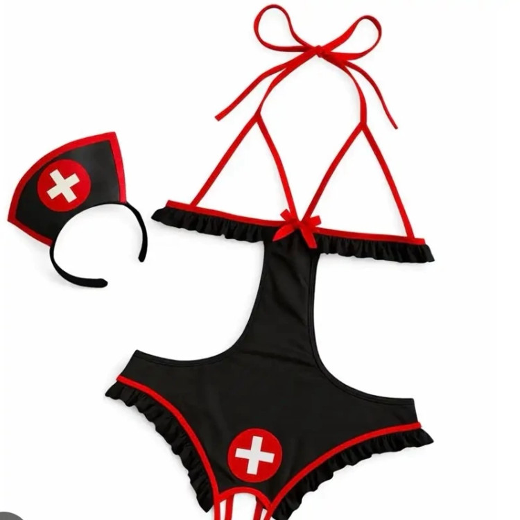 خاص، فانتزی و متفاوت 🖤❤️ ست فانتزی طرح پرستاری با طراحی بنددار جذاب و تل🙈🥰 سبک، راحت و ایدهآل برای استایلهای خاص و متفاوت ✨ انتخابی جسورانه برای سلیقههای خاص😌💖 خاص ترین بادی پرستاری فاق باز رو موجود کردیمم😍 سایز L/xl بها💸